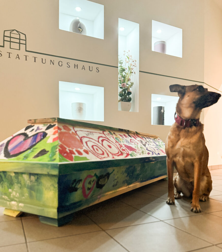 Im Büro sorgt Amy für eine entspannte und herzliche Atmosphäre. Sie erinnert uns täglich daran, dass Mitgefühl und Empathie nicht nur Worte sind, sondern gelebte Werte – auch und gerade in den schwersten Momenten. Für uns ist sie ein Symbol dafür, dass selbst im Umfeld von Abschied und Trauer Platz für Licht, Nähe und Trost bleibt.